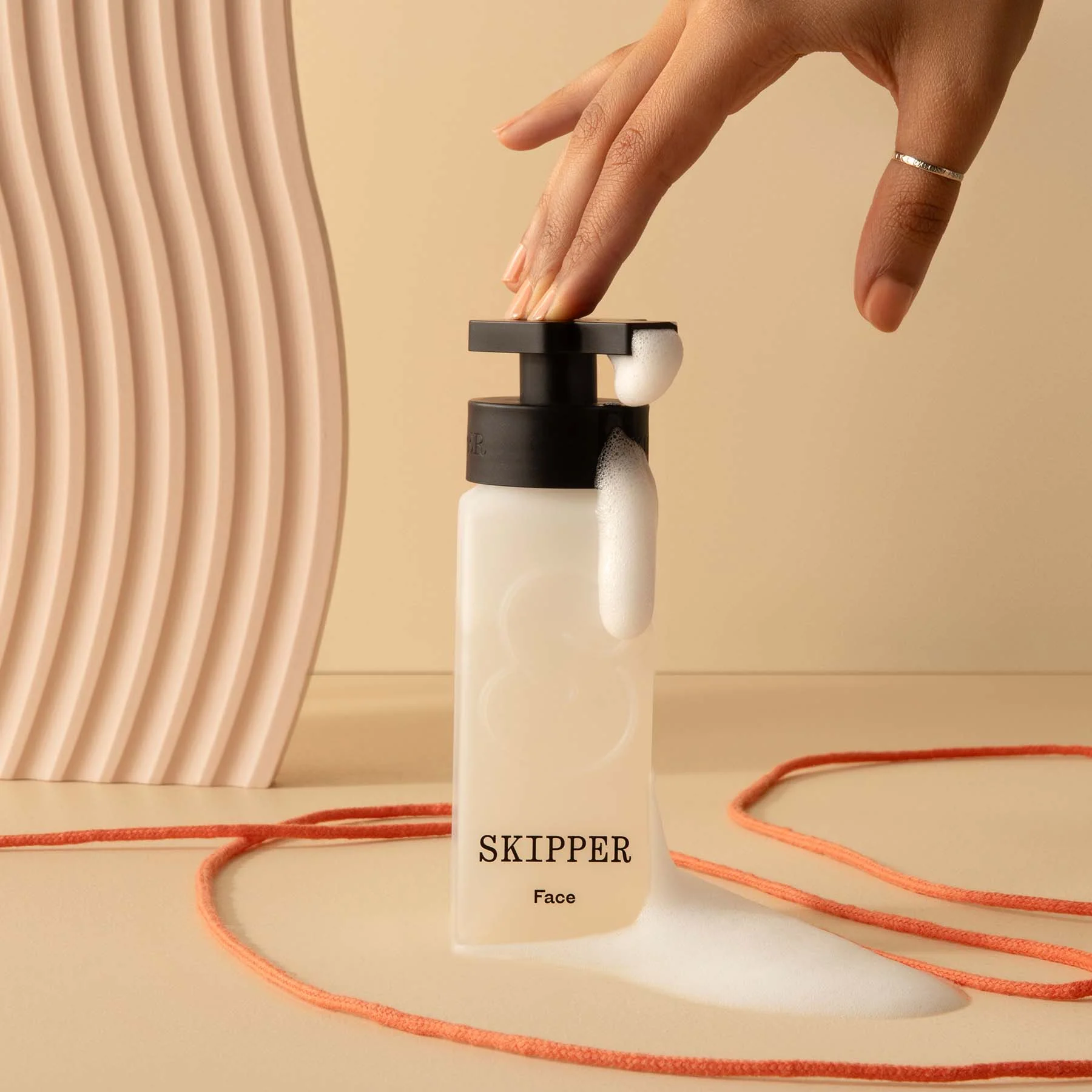 - Dispenser features āSā logo embossing, with matte black custom Skipper pump